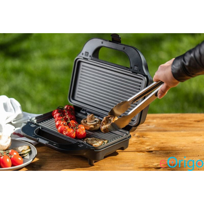 Vezérlése egyszerű és intuitív - az optimális hőmérséklet elérését piros és zöld fények jelzik, továbbá a hőmérséklet szabályozása automatikus. A tányérok szabadon cserélhetőek, ezenkívül tapadásgátló (tapadásmentes) felületkezelésük megakadályozza az odaégést, így a készülék egyszerűen és könnyen tisztítható. A biztonságos működést hőbiztosító és csúszásgátló lábak biztosítják, mely növeli a szendvicssütő stabilitását.